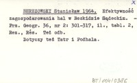 BEREZOWSKI Stanisław 1964 a Efektywność zagospodarowania hal w Beskidzie Sądeckim.