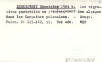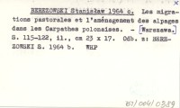 BEREZOWSKI Stanisław 1964 c Les migrations pastorales et l'aménagement des alpages dans les Carpathes polonaises.