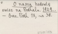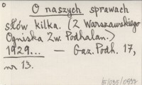 O naszych sprawach słów kilka. (Z Warszawskiego Ogniska Zw. Podhalan). 1929...