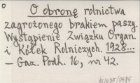 O obronę rolnictwa zagrożonego brakiem paszy. Wystąpienie Związku Organ. i Kółek Rolniczych. 1928...