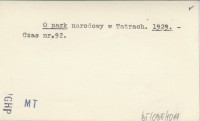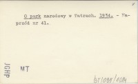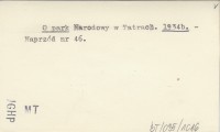 O Parku Narodowym. 1931