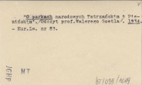 "O parkach narodowych Tatrzańskim + Pienińskim". /Odczyt prof. Walerego Goetla/. 1934