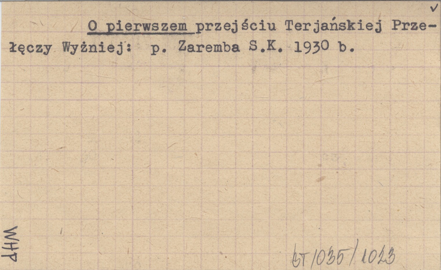 O pierwszem przejściu Terjańskiej Przełęczy Wyżniej