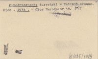 O podniesienie turystyki w Tatrach słowackich. 1934