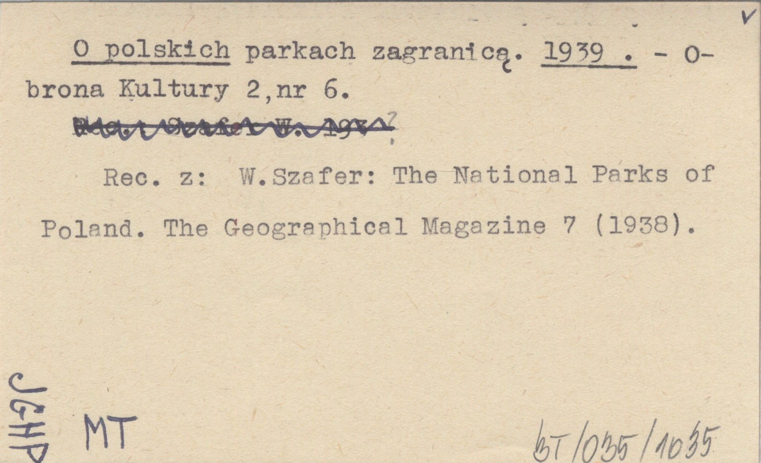 Obrona Kultury, 2, nr 6. Rec. z: W. Szafer: The National Parks of Poland. The Geographical Magazine 7 (1938).