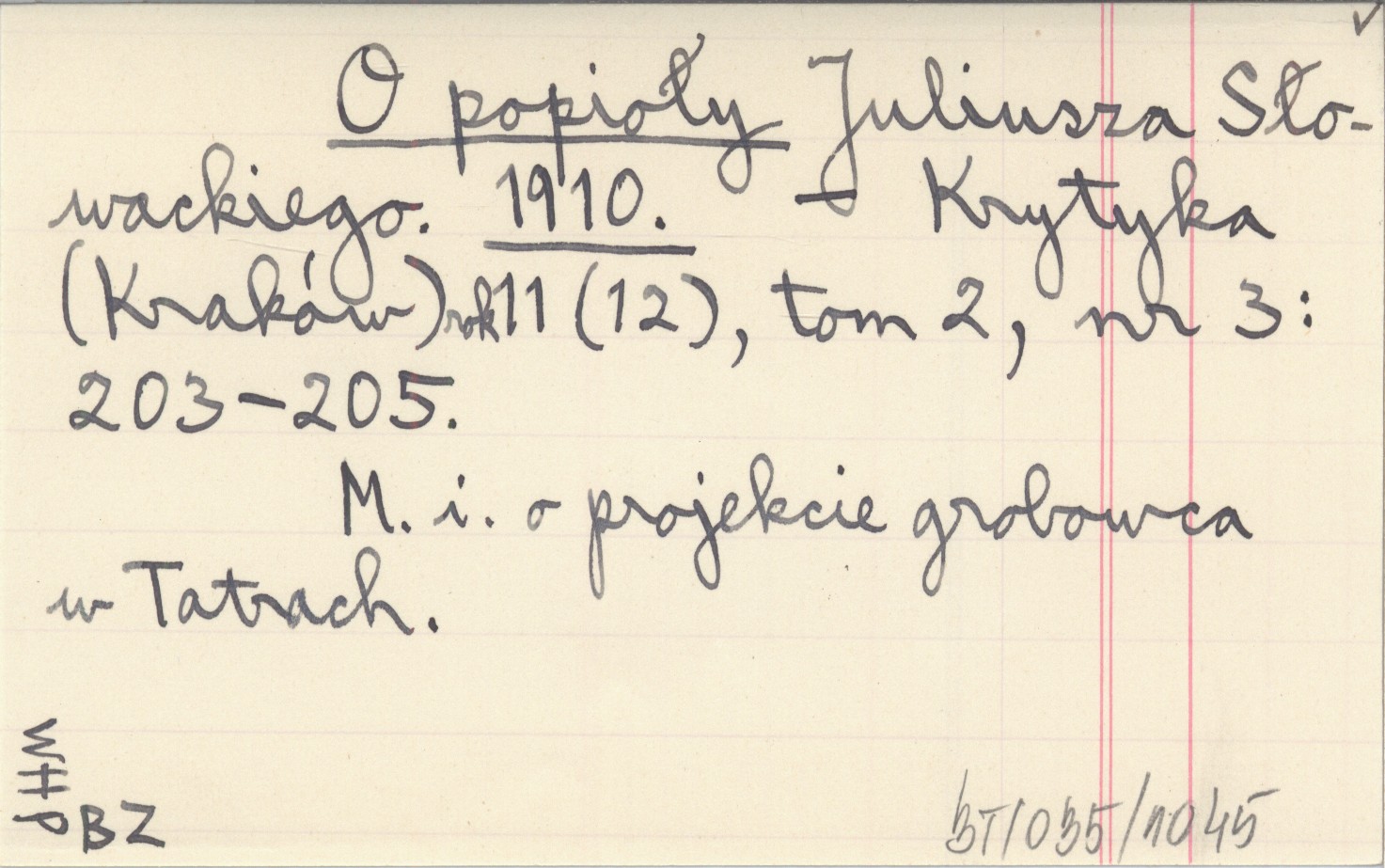 Krytyka (Kraków) , R. 11 (12), t. 2, nr 3: 203-205. M. in. o projekcie grobowca w Tatrach.