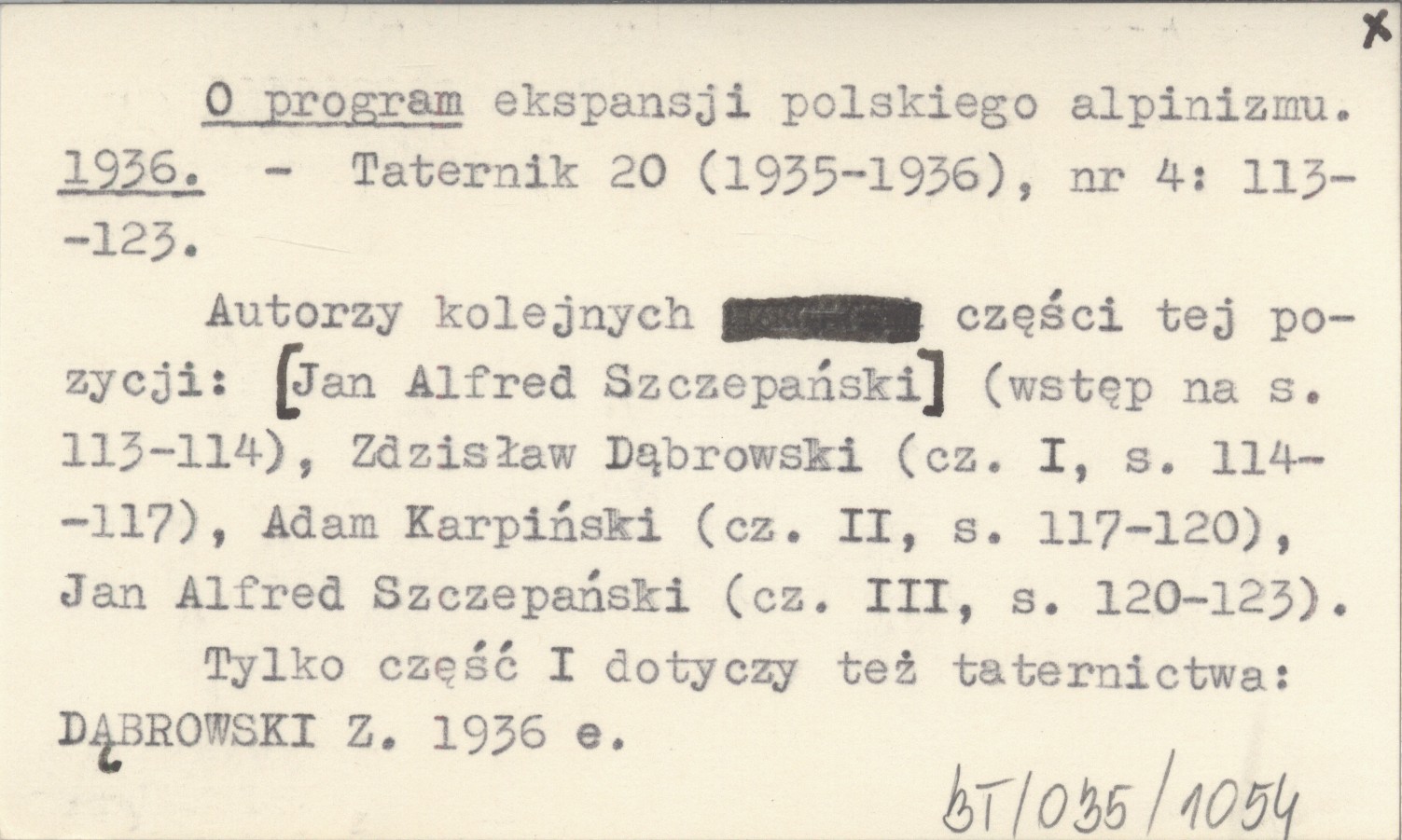 Taternik, 20 (1935-1936), nr 4: 113-123. Autorzy kolejnych części tej pozycji: [Jan Alfred Szczepański] (wstęp na s. 113-114), Zdzisław Dąbrowski (cz. I, s. 114-117), Adam Karpiński (cz. II, s. 117-120), Jan Alfred Szczepański (cz. III, s. 120-123. Tylko część I dotyczy też taternictwa: DĄBROWSKI Z. 1936 e. DĄBROWSKI Z. 1936 e