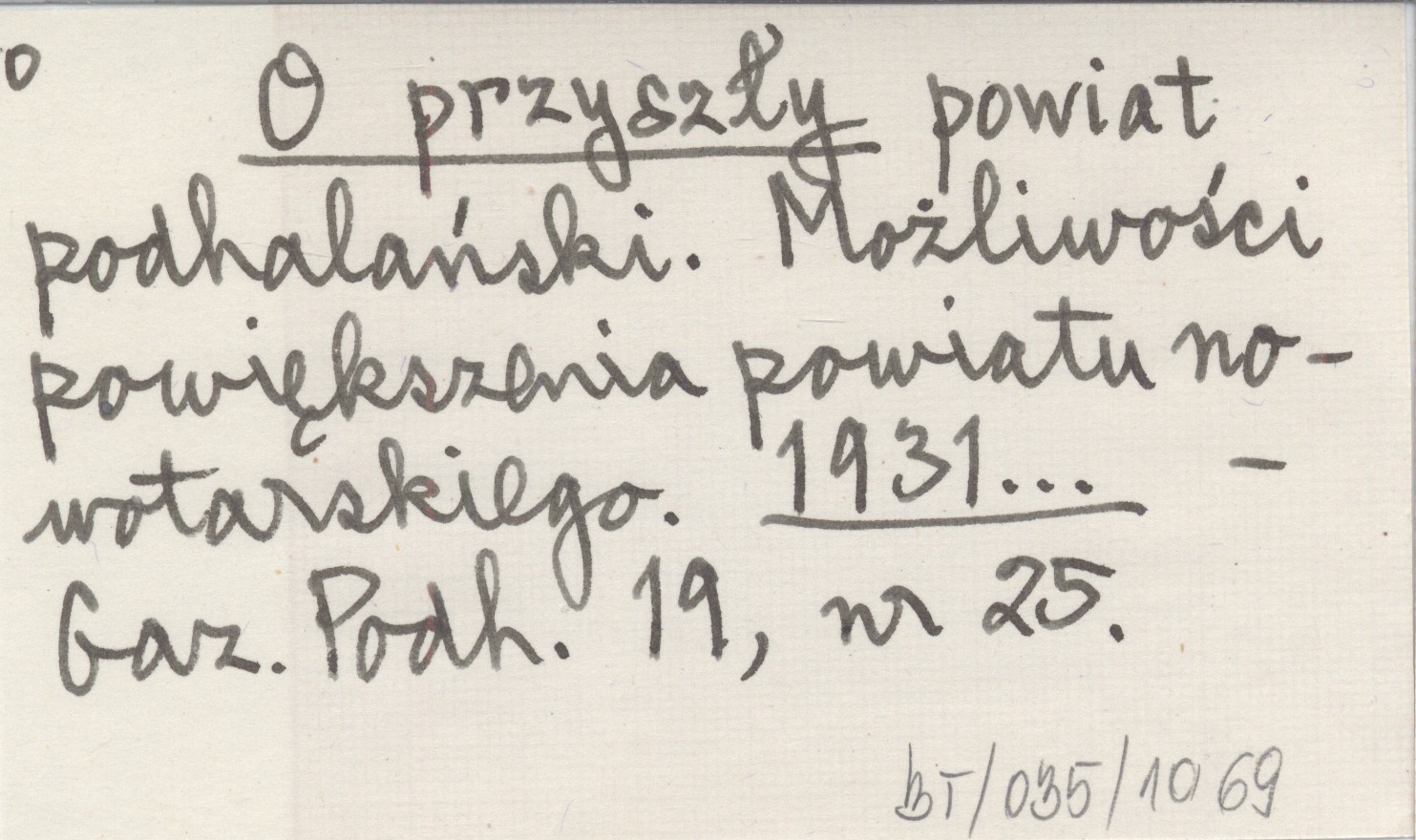 O przyszły powiat podhalański. Możliwości powiększenia powiatu nowotarskiego. 1931...