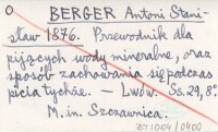 BERGER Antoni Stanisław 1876 Przewodnik dla pijących wody mineralne, oraz sposób zachowania się podczas picia tychże.