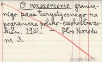 O rozszerzenie granicznego pasa turystycznego na pograniczu polsko-czechosłowackiem. 1931