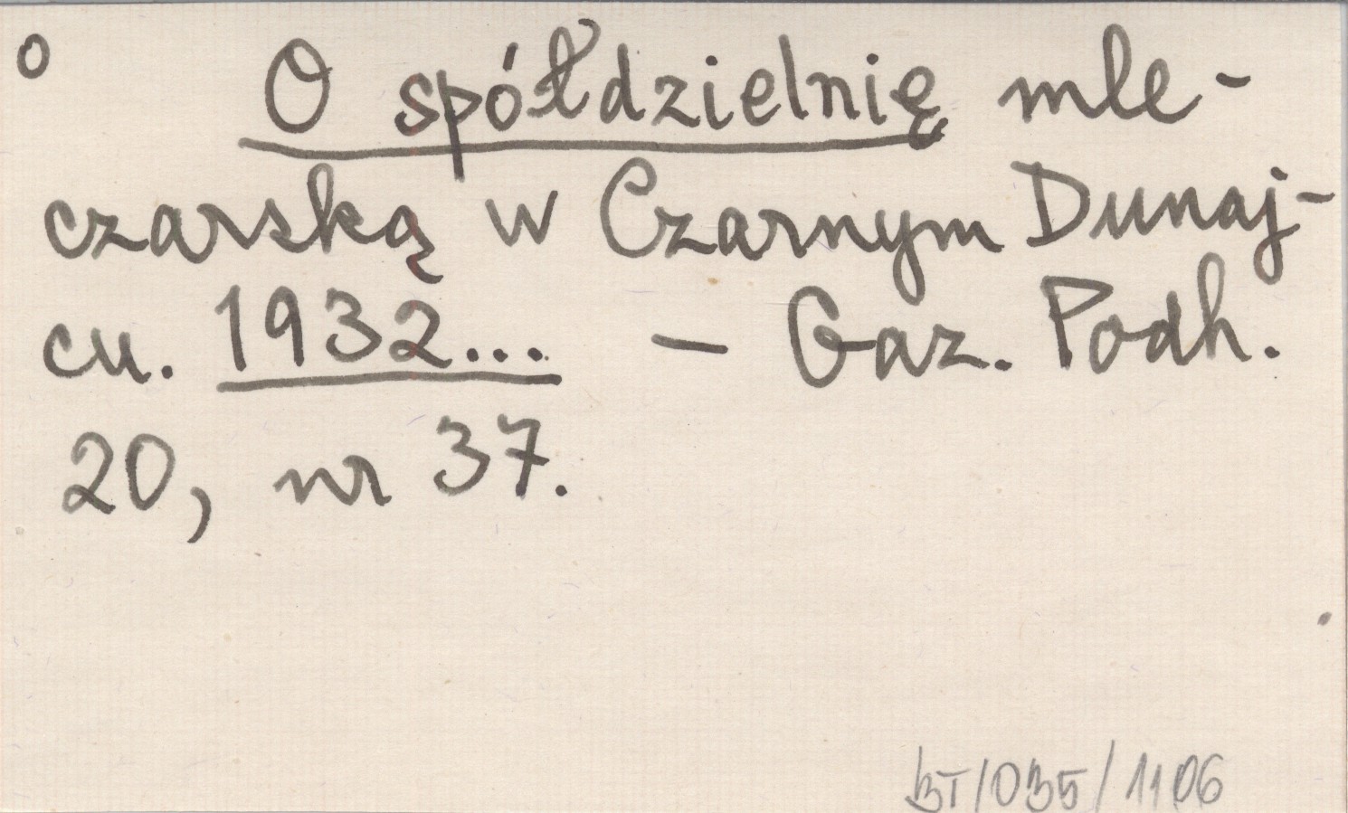 O spółdzielnię mleczarską w Czarnym Dunajcu. 1932...