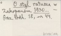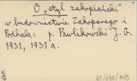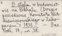 O stylu w budownictwie na Podhalu. (Drugie posiedzenie Komitetu Witkiewiczowskiego w Zakopanem). 1931...