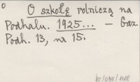 O szkołę rolniczą na Podhalu. 1925...