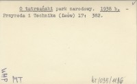 Projekt Digitalizacja fiszek z Bibliografią Tatr i Podtatrza Witolda Henryka Paryskiego jest finansowany ze środków Ministra Kultury i Dziedzictwa Narodowego oraz Tatrzańskiego Parku Narodowego.