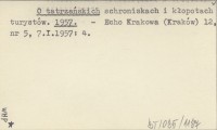 O tatrzańskich schroniskach i kłopotach turystów. 1957