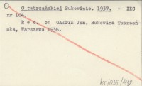 O tatrzańskiej Bukowinie. 1937