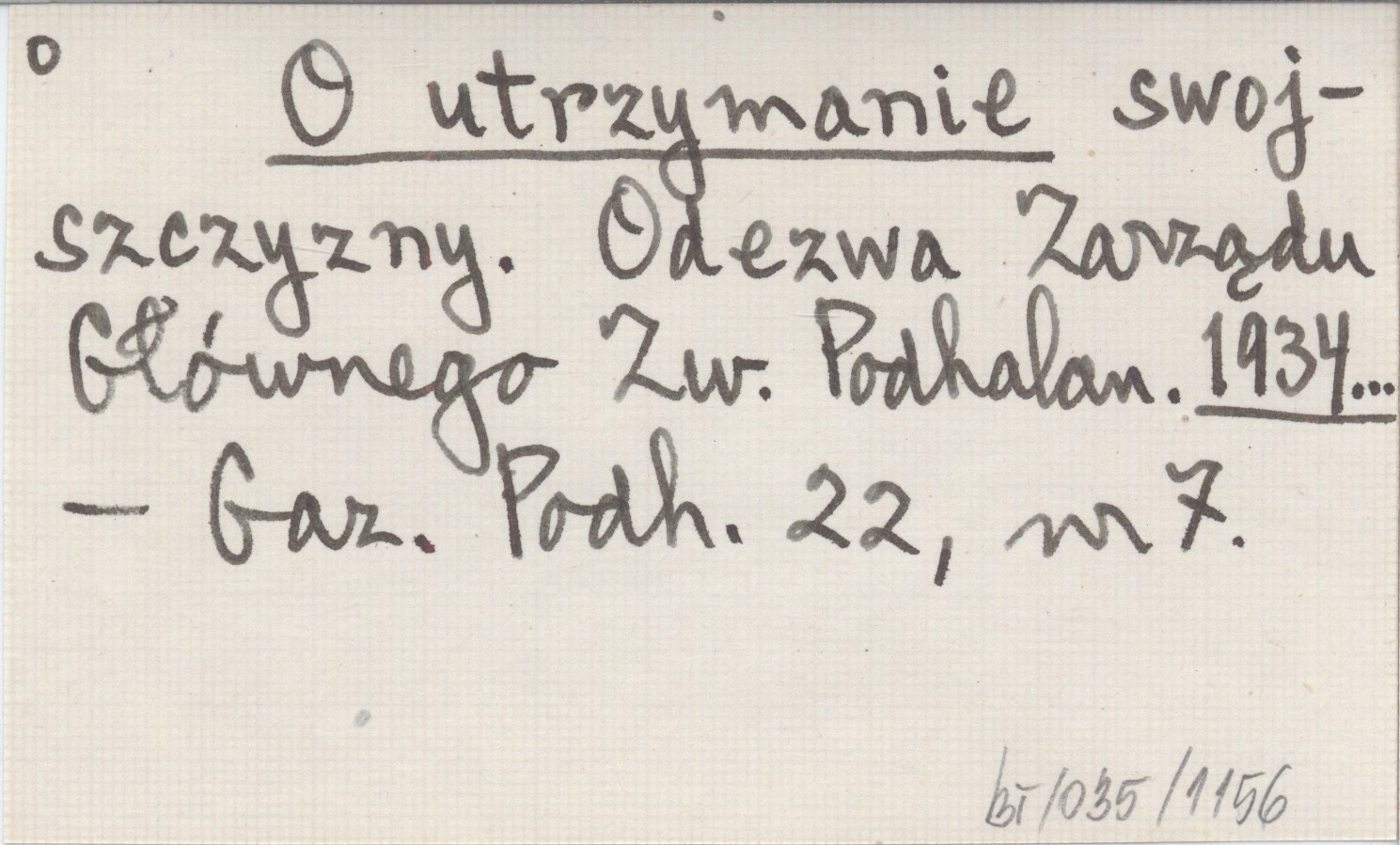 O utrzymanie swojszczyzny. Odezwa Zarządu Głównego Zw. Podhalan. 1934...
