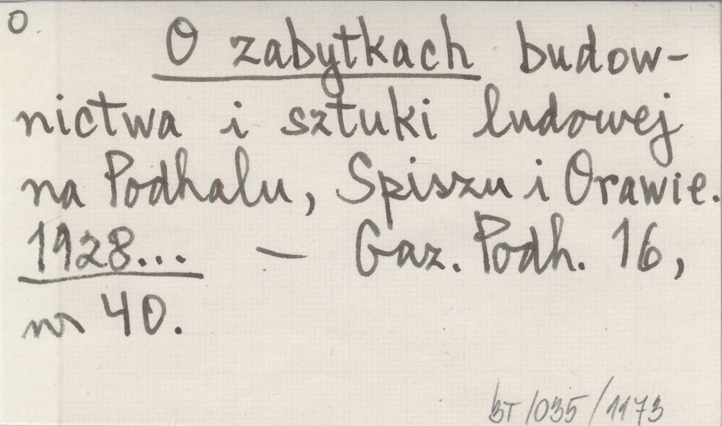 O zabytkach budownictwa i sztuki ludowej na Podhalu, Spiszu i Orawie. 1928...