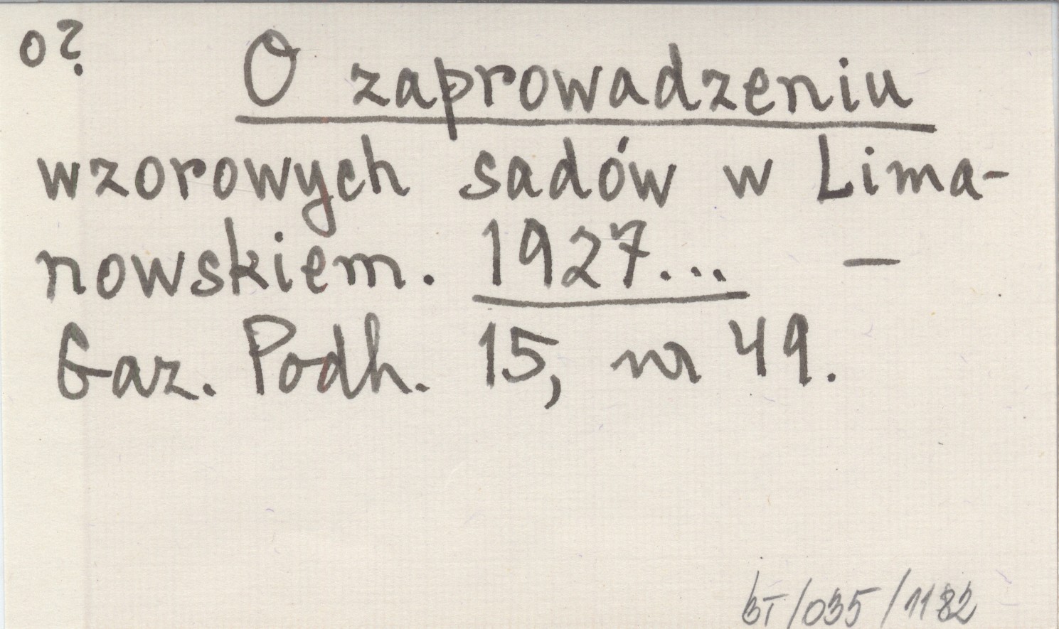 O zaprowadzeniu wzorowych sadów w Limanowskiem. 1927...