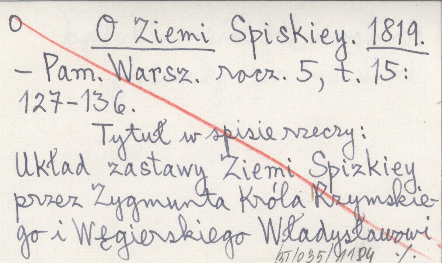 Pamiętnik Warszawski, R. 5, t. 15: 127-136. Tytuł w spisie rzeczy: Układ zastawy Ziemi Spizkiey przez Zygmunta Króla Rzymskiego i Węgierskiego Władysławowi Królowi Polskiemu dotąd drukiem nieogłoszony.