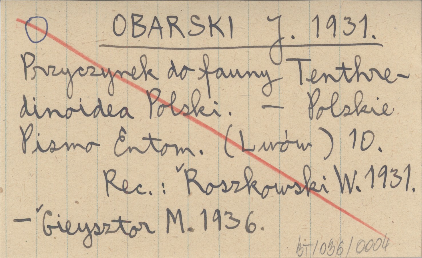 OBARSKI J. 1931 Przyczynek do fauny Tenthredinoidea Polski.