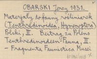 OBARSKI J. 1931 Przyczynek do fauny Tenthredinoidea Polski.
