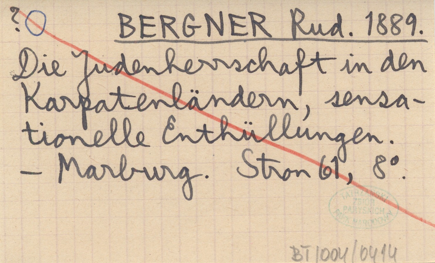 BERGNER Rud. 1889 Die Judenherrschaft in den Karpatenländern, sensationelle Enthüllungen.