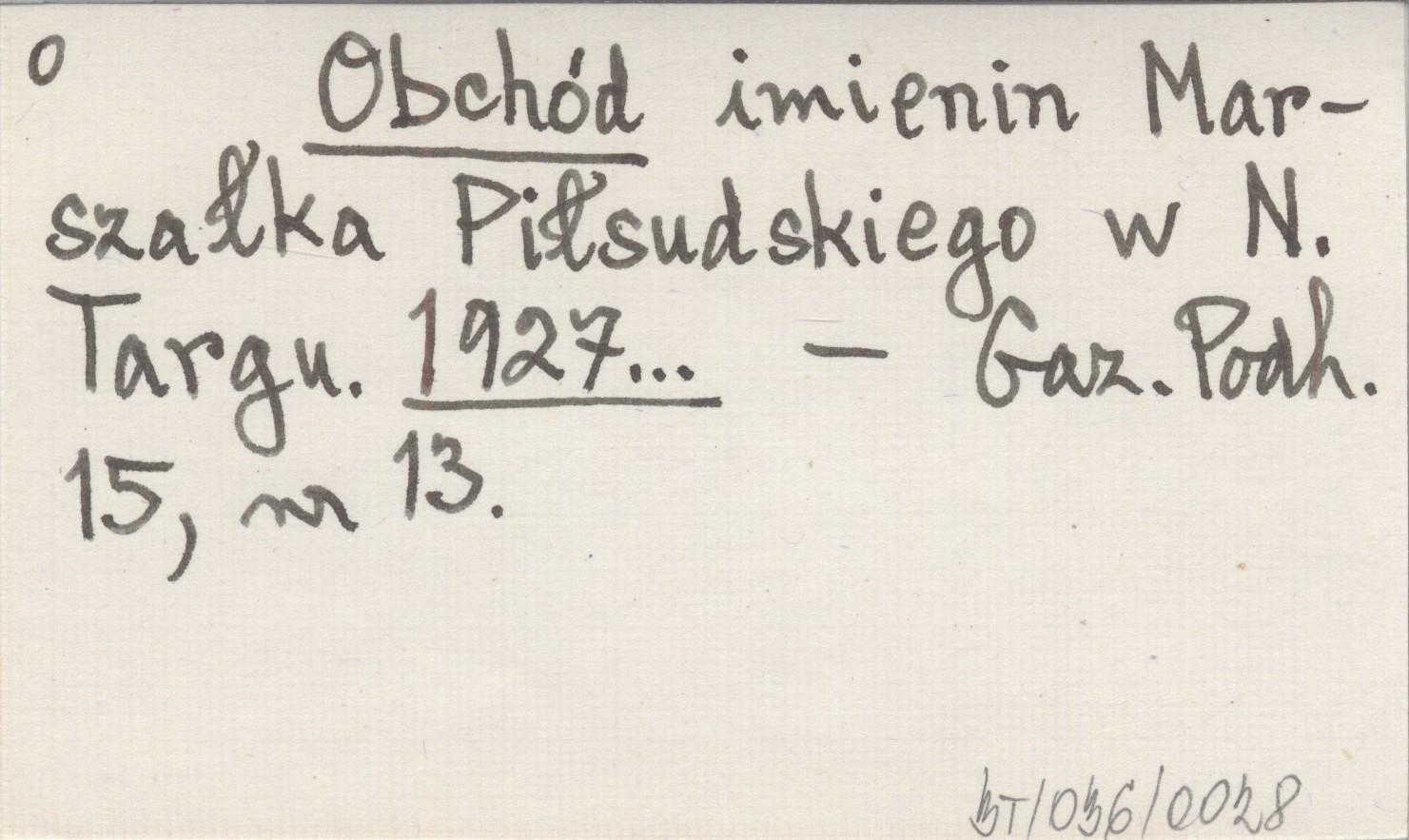 Obchód imienin Marszałka Piłsudskiego w N. Targu. 1927...