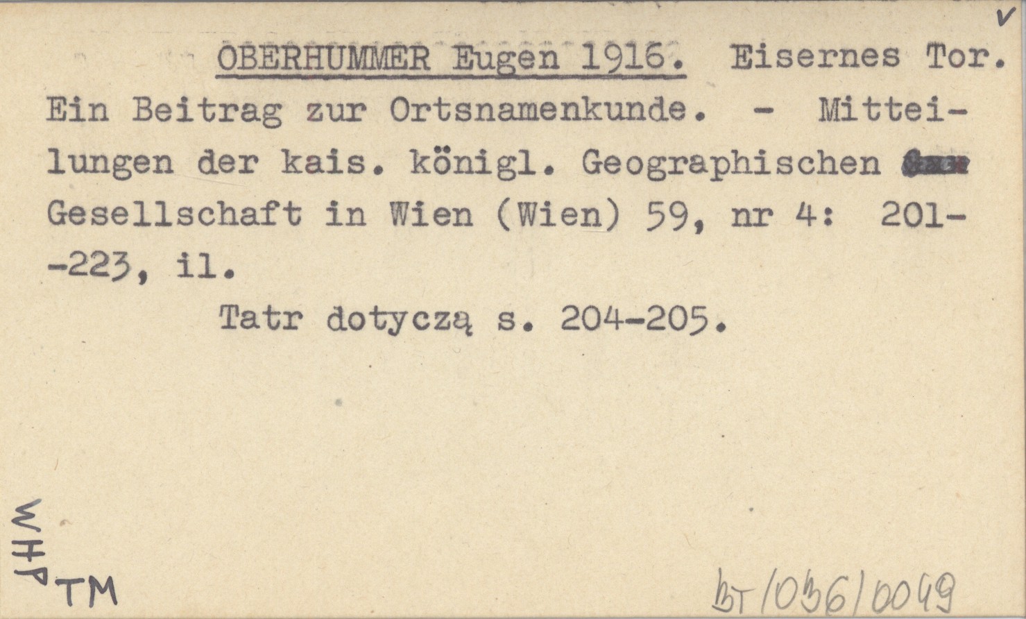 Mitteilungen des kais. königl. Geographischen Gesellschaft in Wien (Wien) , 59, nr 4: 201-223, il. Tatr dotyczą s. 204-205.