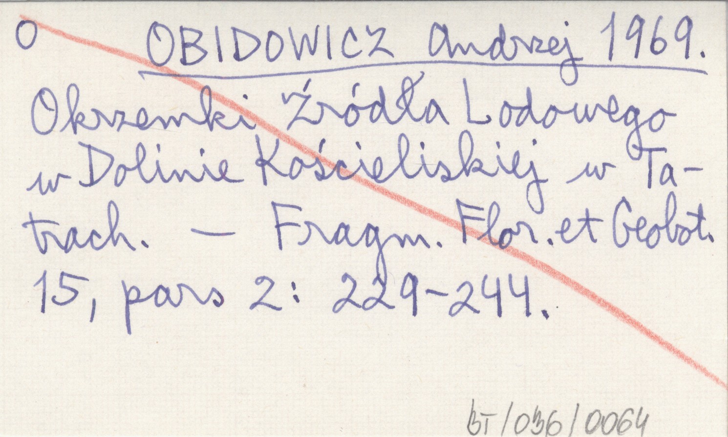 OBIDOWICZ Andrzej 1969 Okrzemki Źródła Lodowego w Dolinie Kościeliskiej w Tatrach.