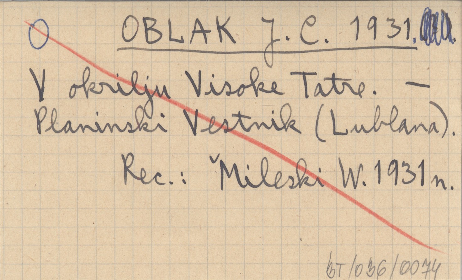 Planinski Vestnik (Lublana) , REC: Mileski W. 1931 n.