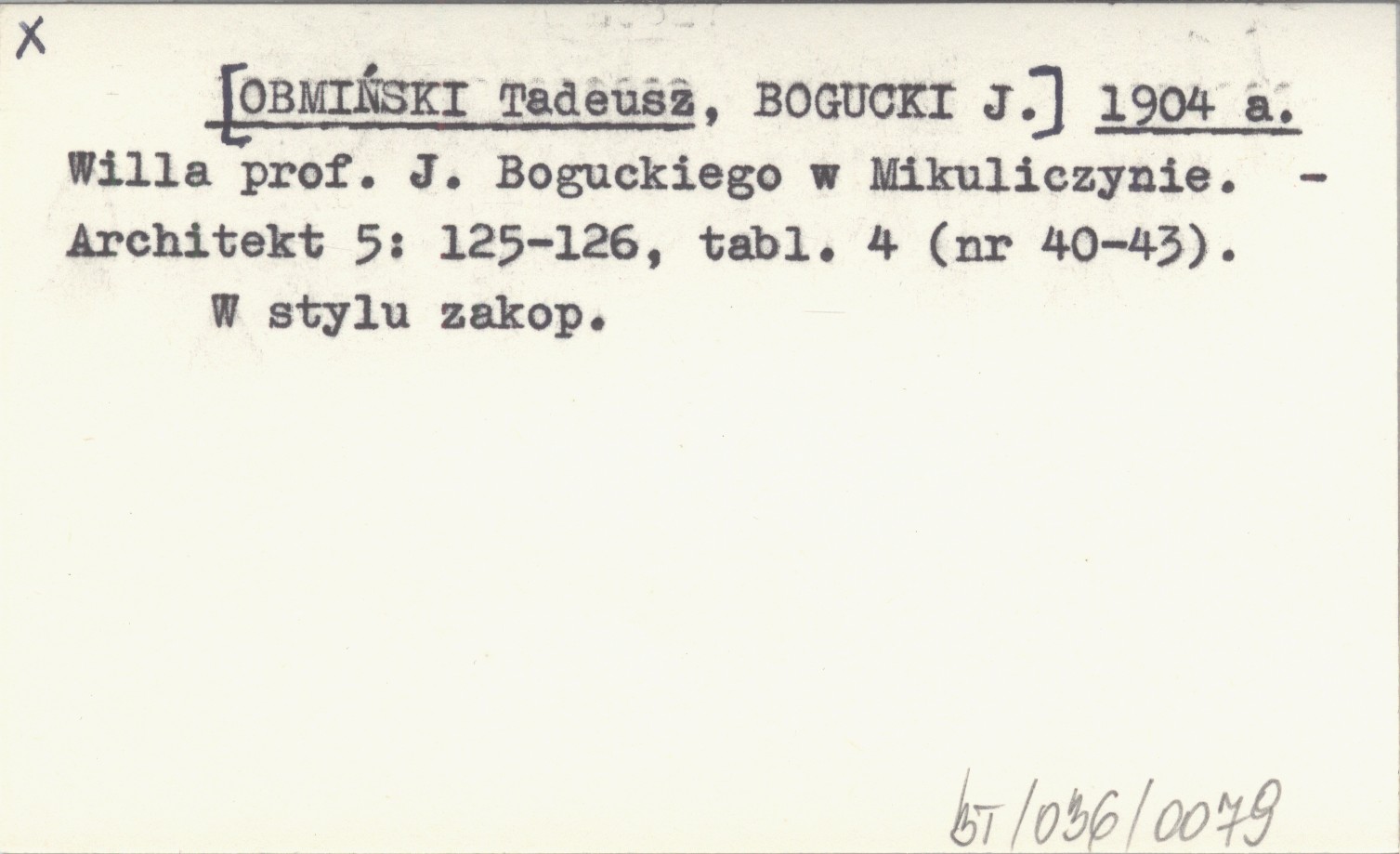 [OBMIŃSKI Tadeusz] [BOGUCKI, J.] ; 1904 a Willa prof. J. Boguckiego w Mikuliczynie.