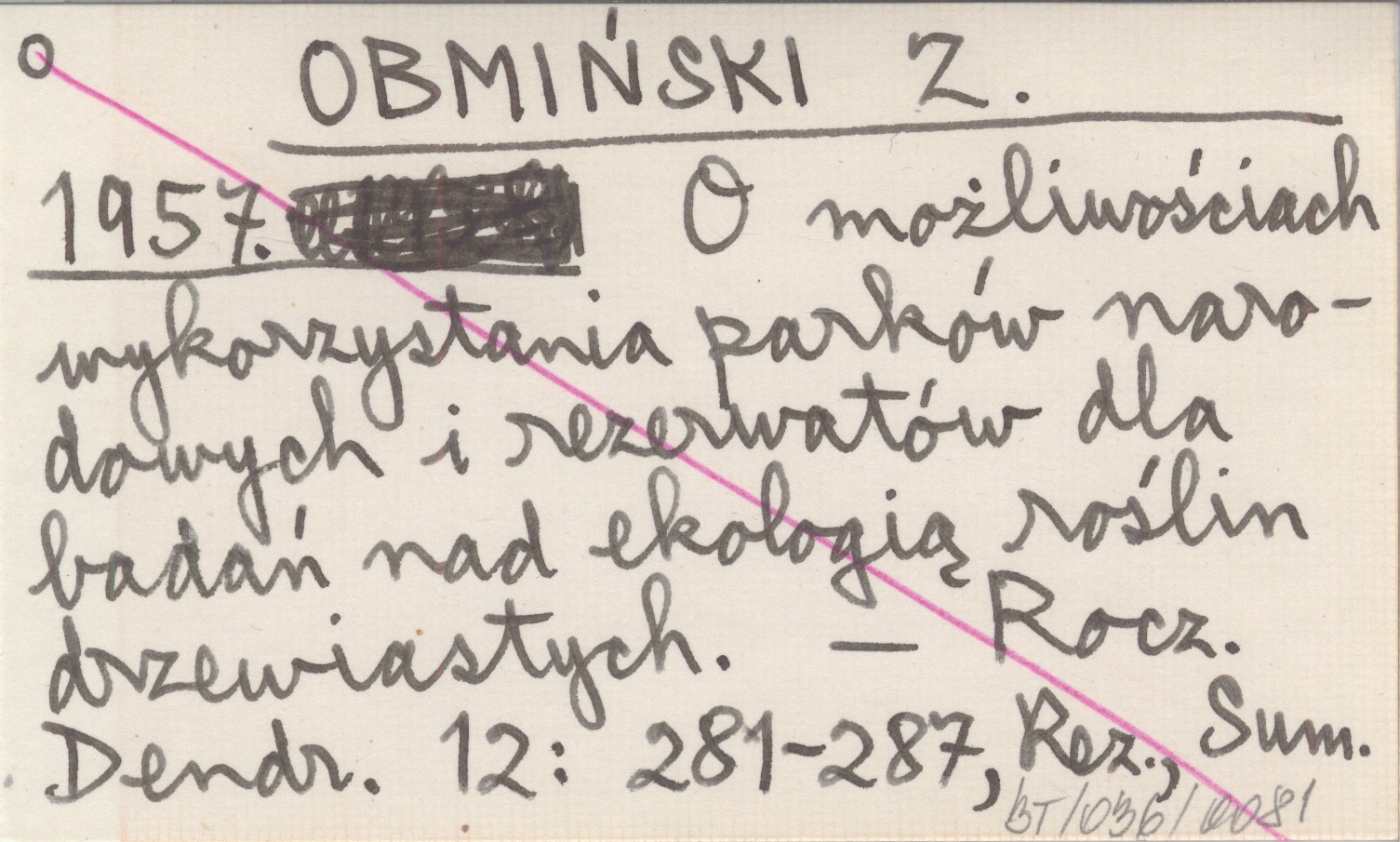 OBMIŃSKI Z. 1957 O możliwościach wykorzystania parków narodowych i rezerwatów dla badań nad ekologią roślin drzewiastych.