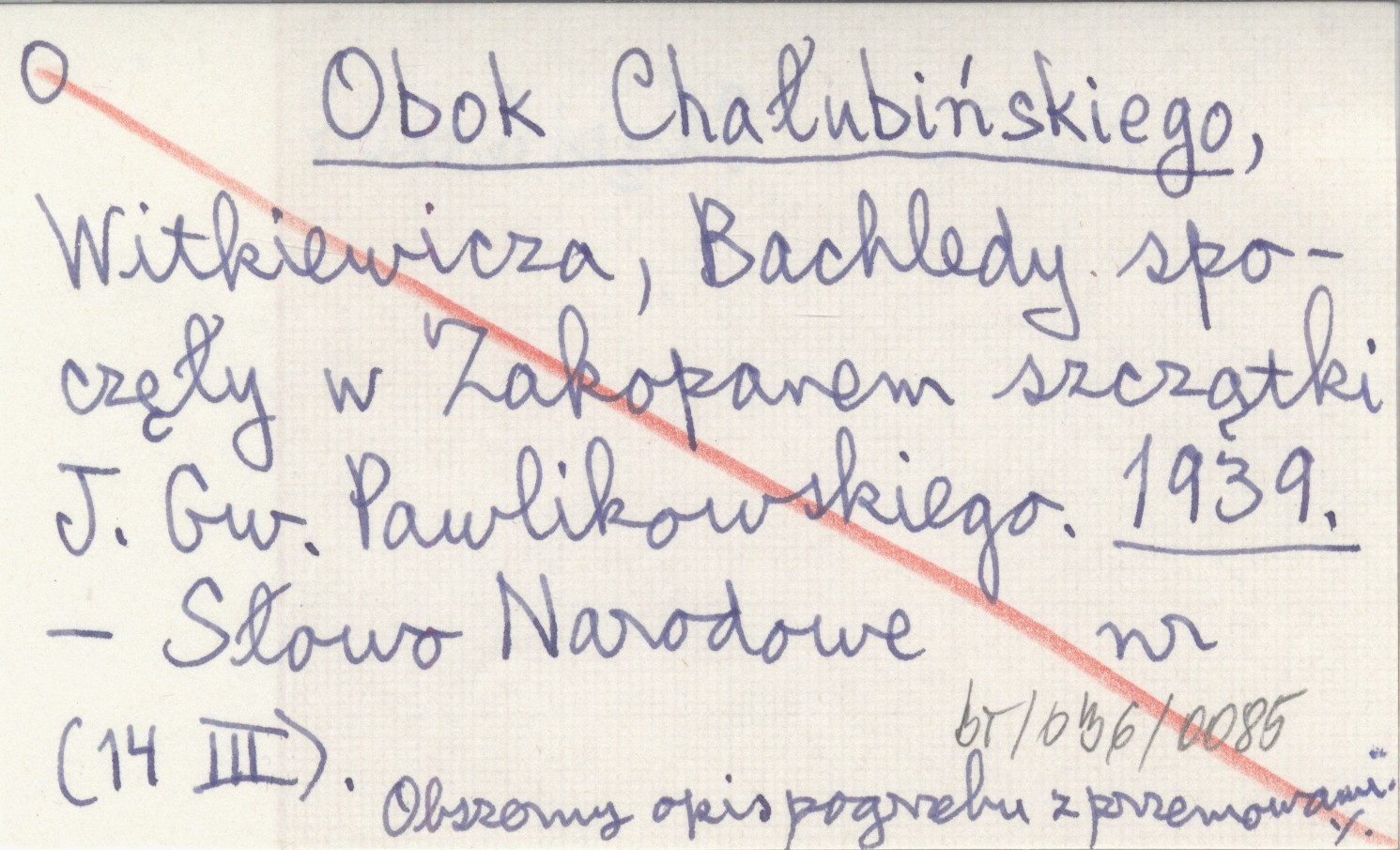Obok Chałubińskiego, Witkiewicza, Bachledy spoczęły w Zakopanem szczątki J. Gw. Pawlikowskiego. 1939