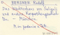 BERGNER Rudolf Das Wächterhaus von Suliguli und andere Karpathengeschichten.