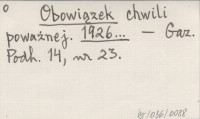 Obowiązek chwili poważnej. 1926...