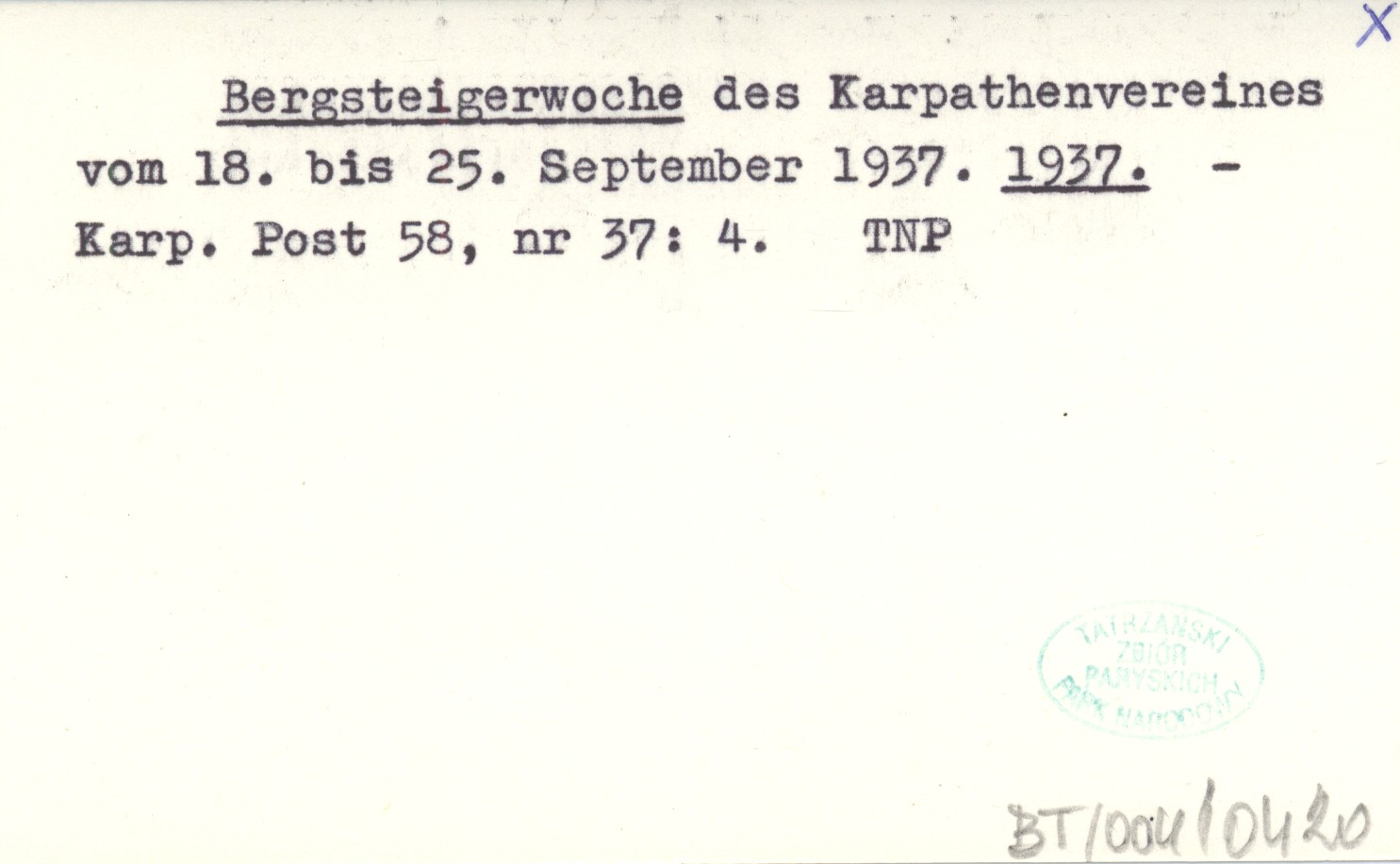 Bergsteigerwoche des Karpathenvereines vom 18. bis 25. September 1937. 1937