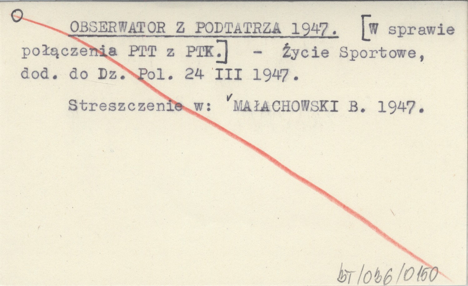 OBSERWATOR z PODTATRZA 1947 [W sprawie połączenia PTT z PTK].