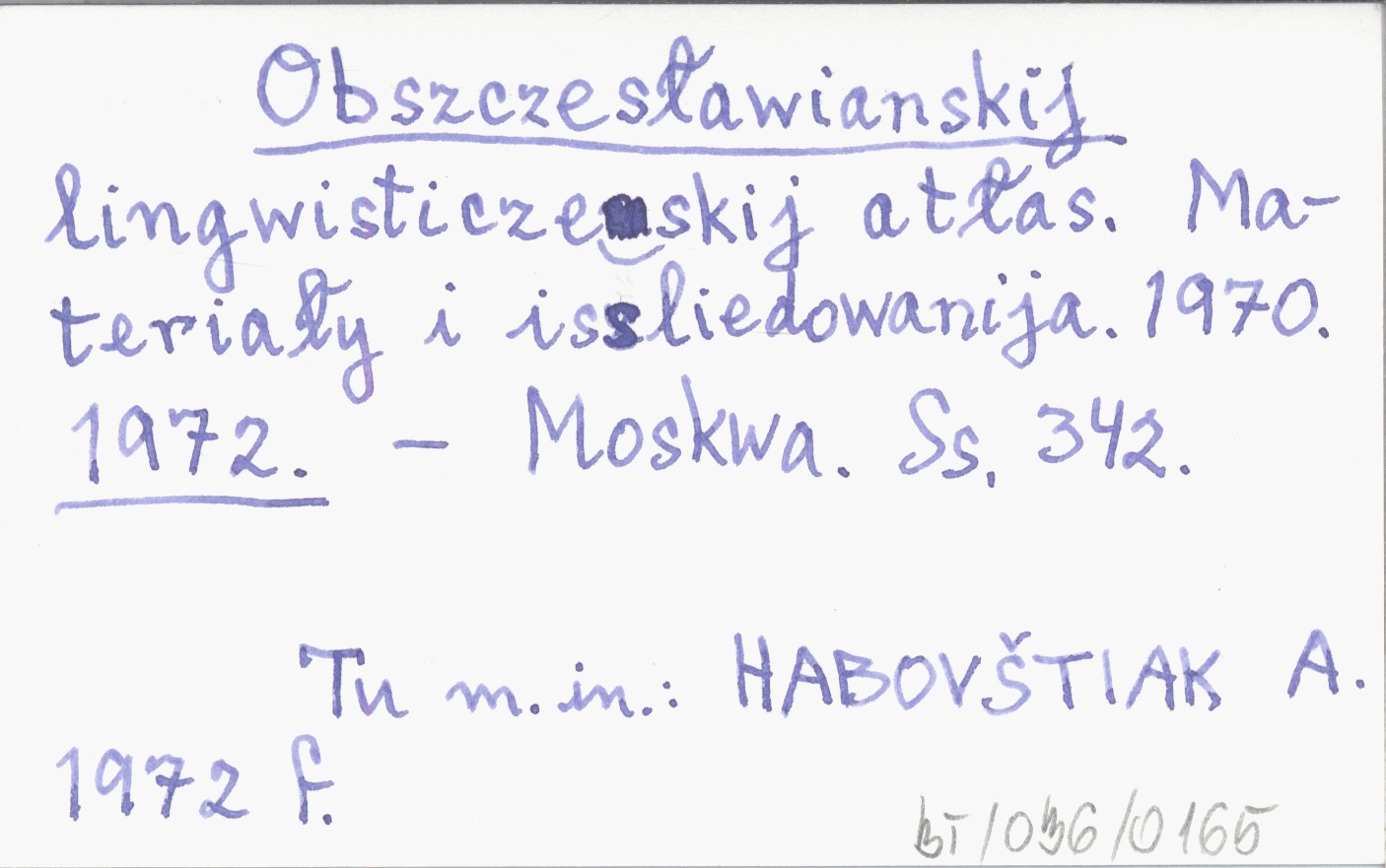 Obszczesławianskij lingwisticzenskij atłas. Materiały i issliedowanija. 1970. 1972