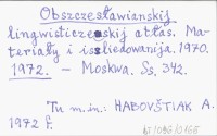 Obszczesławianskij lingwisticzenskij atłas. Materiały i issliedowanija. 1970. 1972