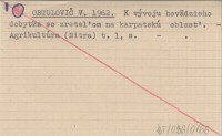OBTULOVIČ V. 1962 K vývoju hovädzieho dobytka so zreteµom na karpatskú oblas».