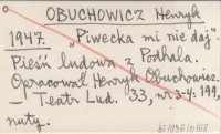 OBUCHOWICZ Henryk 1947 "Piwecka mi nie daj". Pie¶ń ludowa z Podhala. Opracował Henryk Obuchowicz.