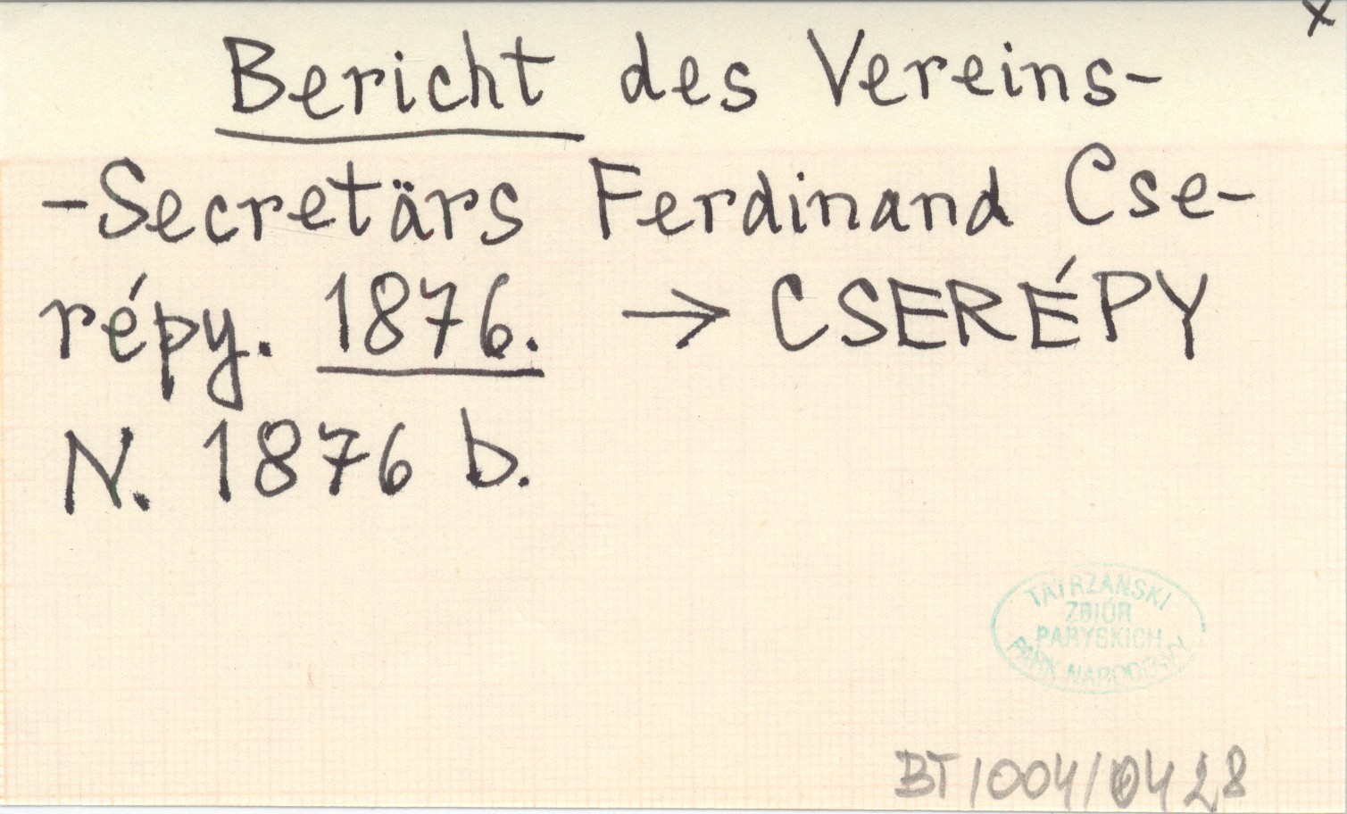 Bericht des Vereins-Secretärs Ferdinand Cserépy. 1876