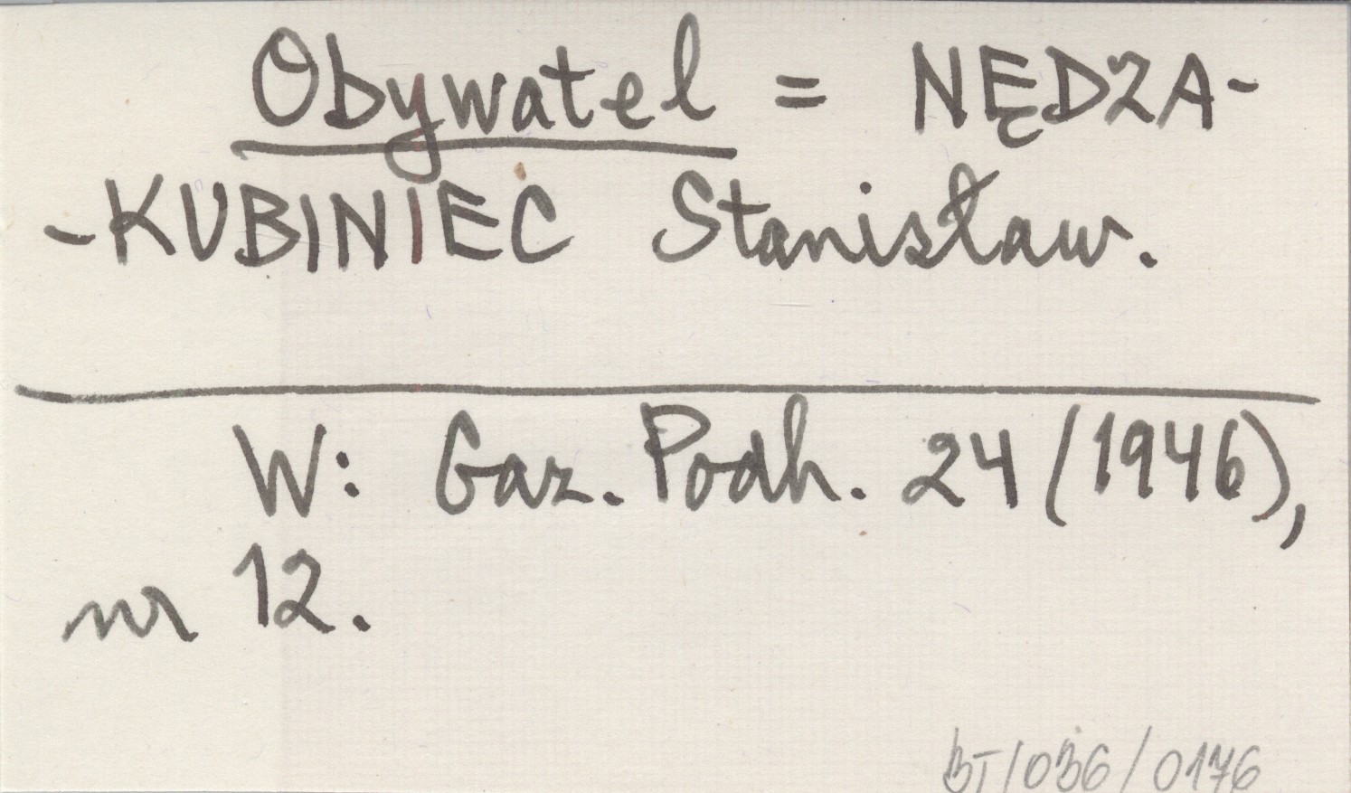 Obywatel NĘDZA-KUBINIEC Stanisław Gazeta Podhalańska 24 (1946), nr 12.