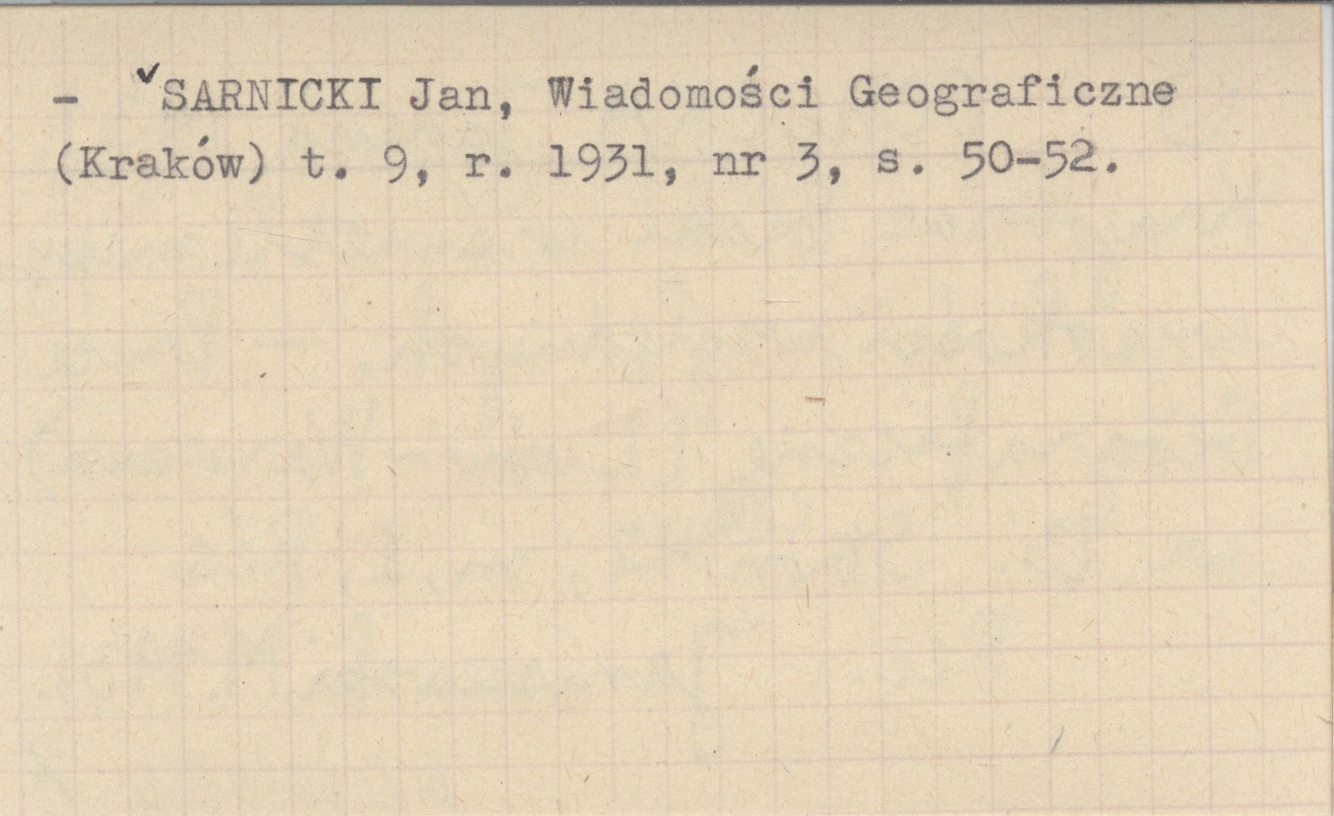 Prace Geograficzne (Lwów ; Warszawa) , Nr 13, XIII, 42 s., 1 m., Rés. REC: Janiszewski M. 1931. SARNICKI Jan, Wiadomości Geograficzne (Kraków) t. 9, r. 1931, nr 3: 50-52.