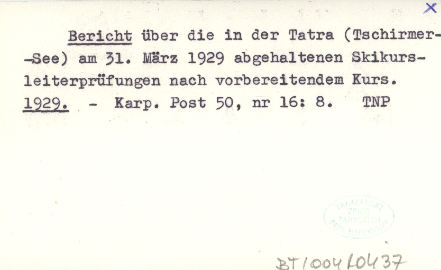 Bericht über die in der Tatra (Tschirmer-See) am 31. März 1929 abgehaltenen Skikurs-leiterprüfungen nach vorbereitendem Kurs. 1929