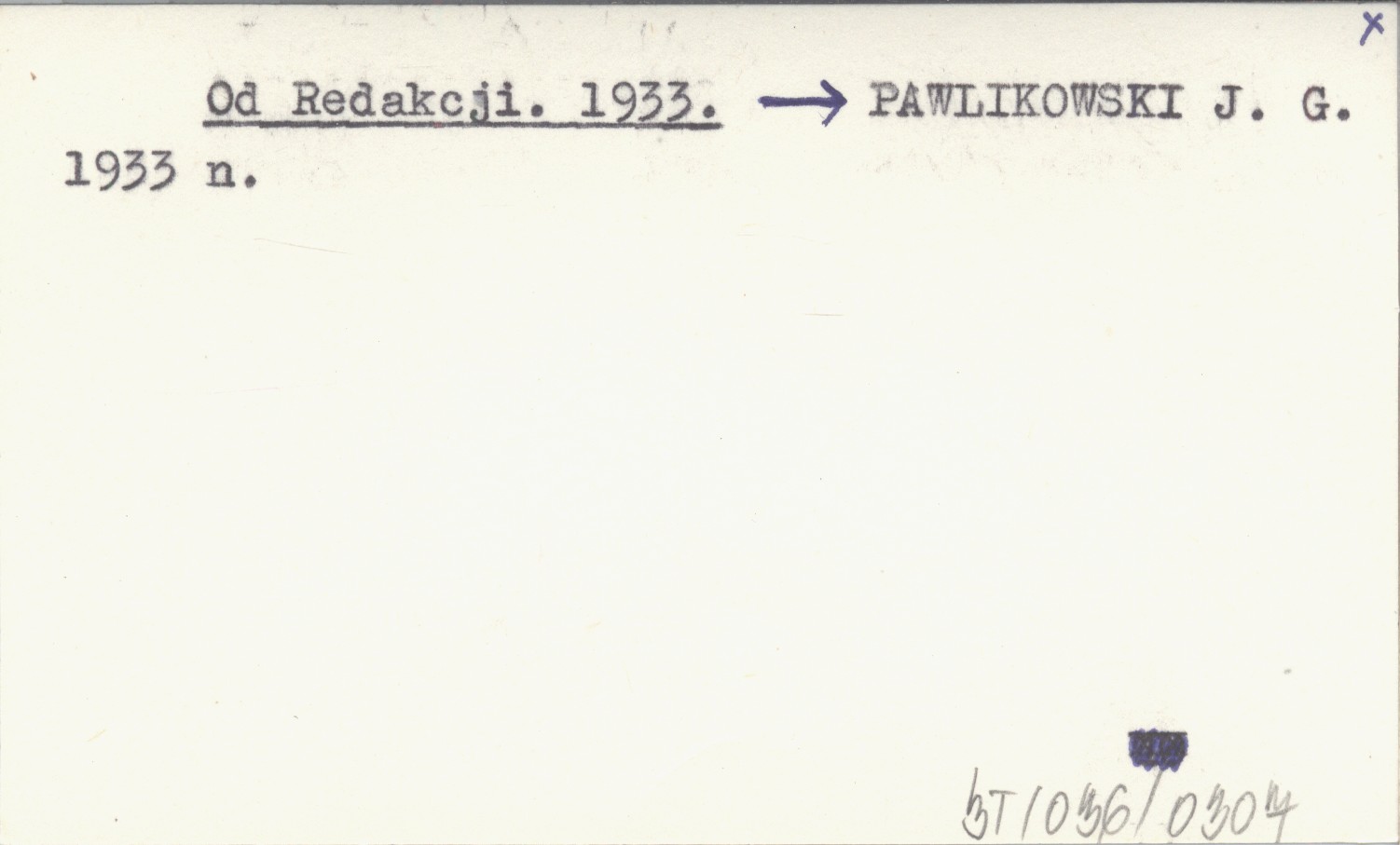 PAWLIKOWSKI J. G. 1933 n
