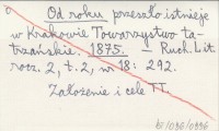 Od roku przeszło istnieje w Krakowie Towarzystwo tatrzańskie. 1875