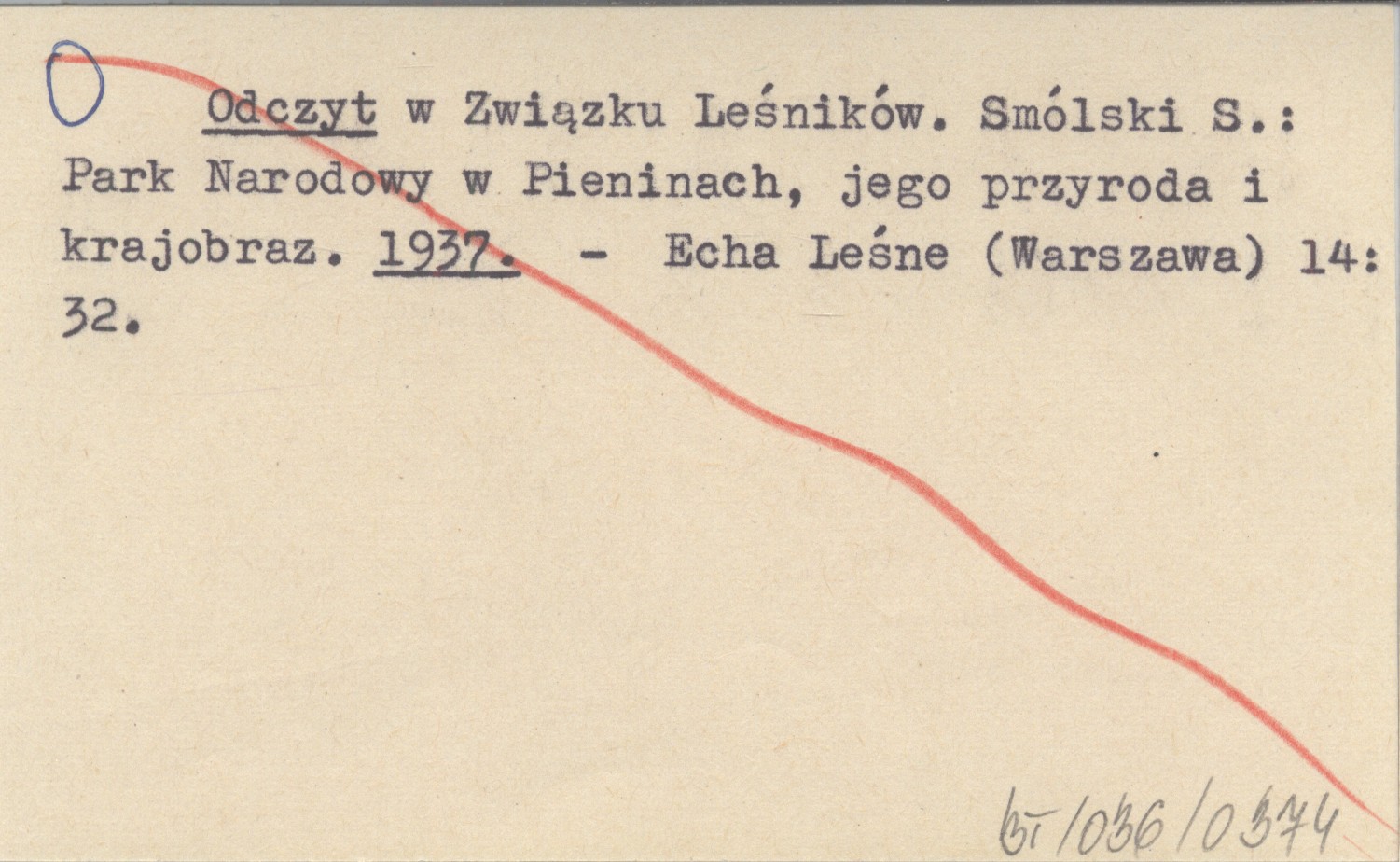 Odczyt w Związku Leśników. Smólski S.: Park Narodowy w Pieninach, jego przyroda i krajobraz. 1937