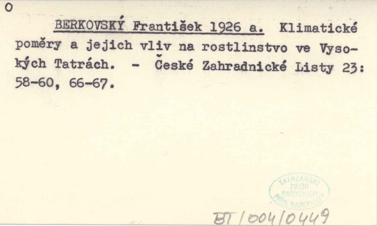 BERKOVSKĘ Frantiček 1926 a Klimatické pomìry a jejich vliv na rostlinstvo ve Vysokęch Tatrách.